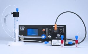 By using a liquid buffer as a carrier phase, and by introducing your samples using a T Junction or the Elveflow chip holder, the valve matrix allows for the controlled injection of very low volumes (<10µL) into your microfluidic chip.