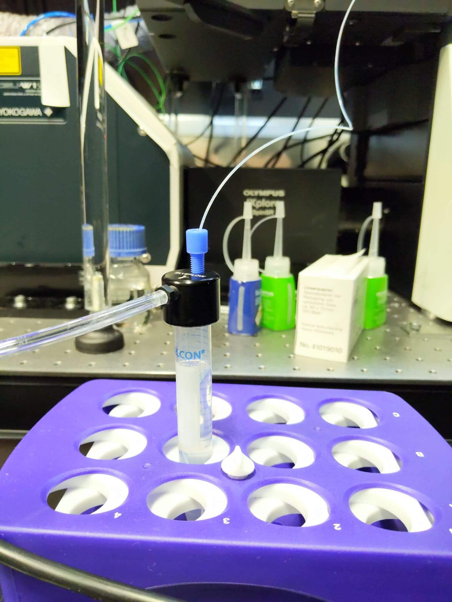 This application note describes how to combine and synchronize liquid perfusion and imaging using an Olympus spinning disc confocal microscope together with an Elveflow pressure-driven flow controlled microfluidic system.