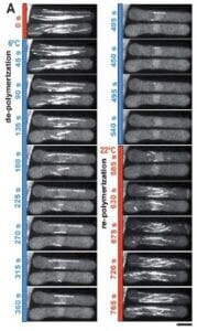 Temperature sensitive mutations are often missense mutations. Mutated proteins retain their functionality at low, permissive, temperature, but at higher, restrictive temperature, they become inactive. Fission yeast biology is intrinsically sensitive to temperature. Furthermore, at low temperatures, microtubules depolymerize. Here, we present the validation of ElveflowTemp use for efficient cytoskeleton studies and cell cycle phenotype analysis